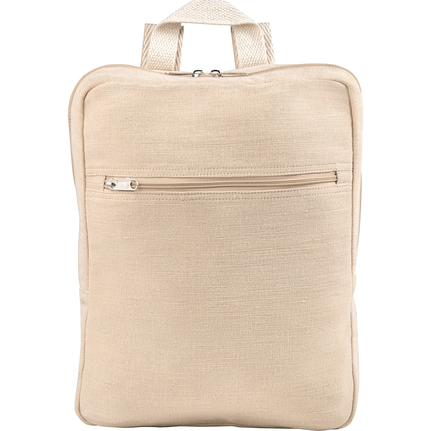 Rucksack aus Juco. Bruin hat ein Hauptfach und eine Aufbewahrungstasche mit Reißverschluss an der Vorderseite. Die Schultergurte bestehen aus Baumwolle. Juco ist eine strapazierfähige Mischung aus Baumwolle und Jute.