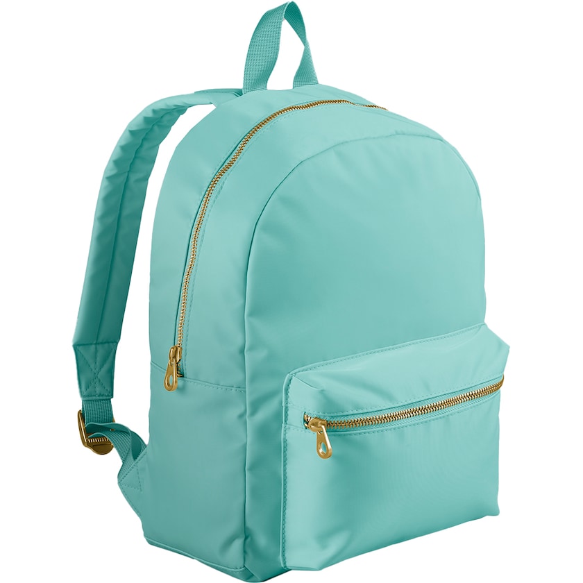 Farbenfroher Rucksack mit goldfarbenem Reißverschluss. Laguna hat ein großes Hauptfach und ein kleineres Reißverschlussfach an der Vorderseite. Der Rücken und die Schultergurte sind gut gepolstert. Der Rucksack besteht aus 100 % Nylon mit einem Futter aus 100 % recyceltem Nylon.