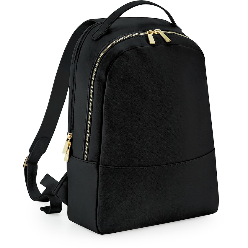 Exklusiver Rucksack aus Kunstleder mit vergoldeten Details. Le Sueur hat eine Laptoptasche, in die die meisten Laptops bis zu 14 Zoll passen. Im Inneren befinden sich außerdem eine Reißverschlusstasche für Wertsachen und eine Halterung für eine Wasserflasche. Auf der Rückseite befindet sich eine versteckte Tasche mit Reißverschluss. Ein luxuriöser Rucksack von hoher Qualität!