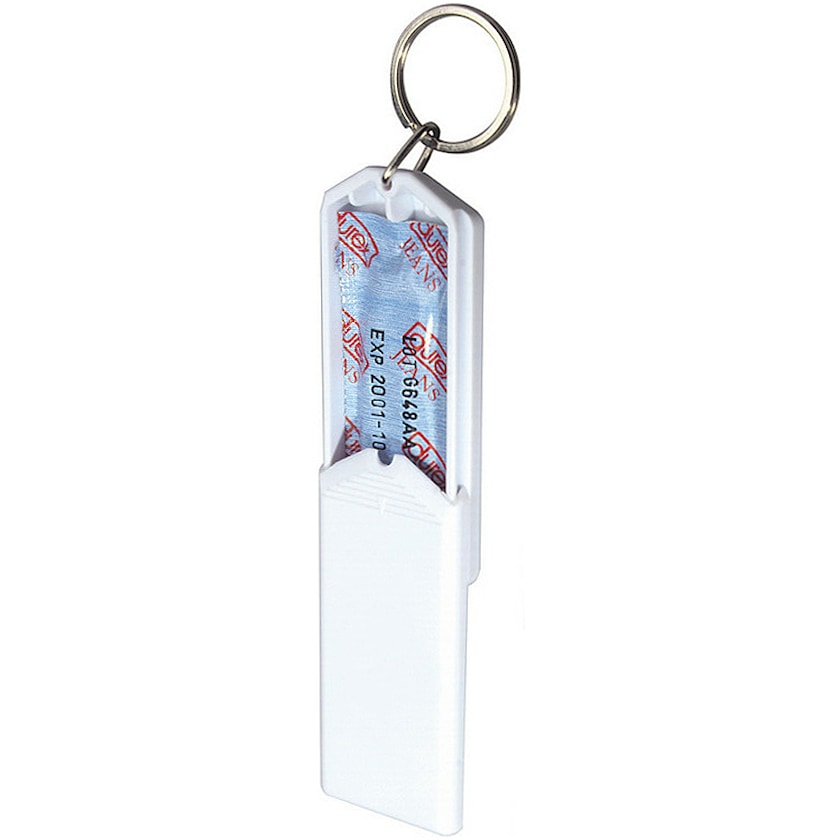 Praktischer Schlüsselanhänger mit Platz für Kondome oder Pflaster.
