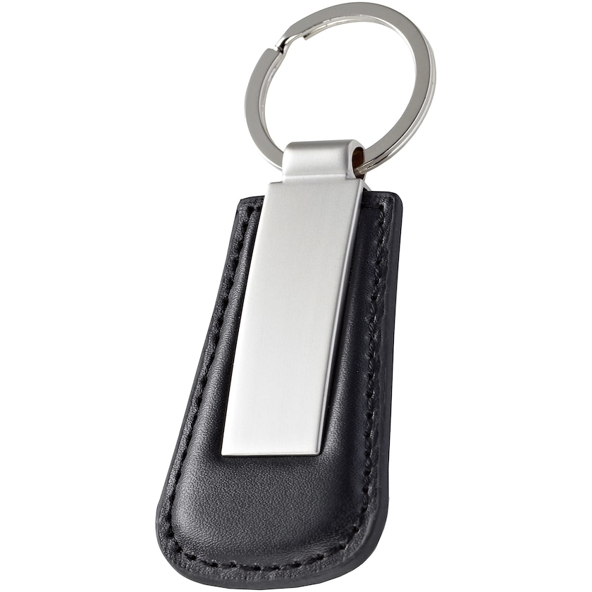 Schlüsselanhänger aus schwarzem Kunstleder und Metall. Schlüsselanhänger Finley wird in einer schicken Geschenkschachtel geliefert. Ein eleganter Schlüsselanhänger zu einem attraktiven Preis.