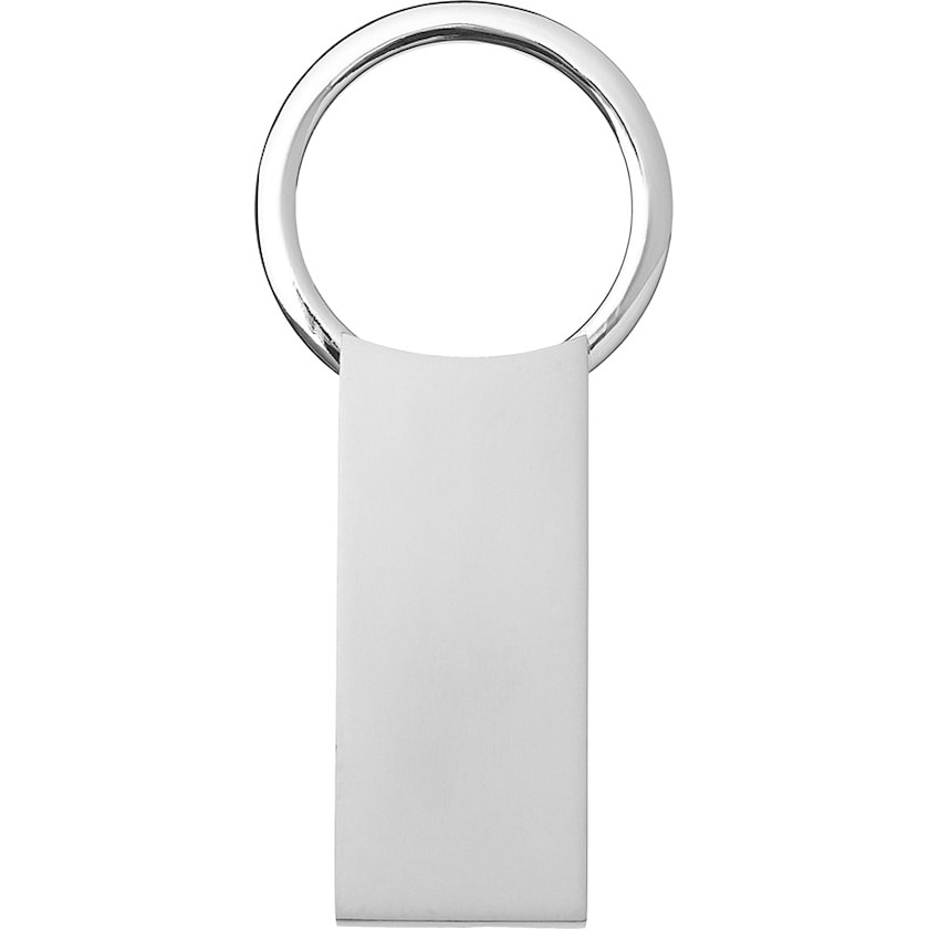 Stilvoller Schlüsselanhänger aus Metall mit großer Druckfläche.