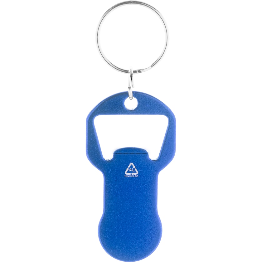 Flaschenöffner mit Einkaufswagen-Chip im Euro-Format Der Flaschenöffner Steven ist aus recyceltem Aluminium gefertigt. Die Beschriftung erfolgt mittels Lasergravur.