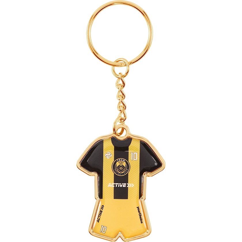 Schlüsselanhänger mit Kette im Design eines Fußballtrikots. Der Schlüsselanhänger ist aus Metall gefertigt und in den Farben Gold, Silber und Bronze erhältlich. Der Schlüsselanhänger lässt sich digital mit Ihrem Motiv bedrucken und wird unter einer schützenden Epoxidschicht überzogen. Die Schlüsselanhänger werden einzeln verpackt in Seidenpapier geliefert.
