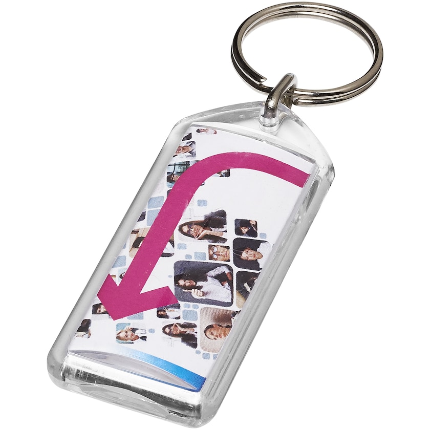 Länglicher Schlüsselanhänger aus dem umweltfreundlichen Material GPPS. Der Druck erfolgt auf beiden Seiten eines Blattes Papier, das im Inneren des GPPS-Gehäuses des Schlüsselanhängers platziert wird. Der Druck kann auf beiden Seiten unterschiedlich sein. Der Schlüsselanhänger wird in Europa produziert.