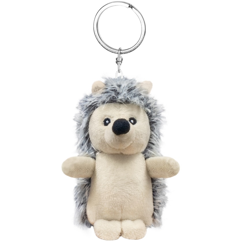 Ein weicher und kuscheliger Igel mit einem Schlüsselring. Der Druck liegt auf dem Magen des Igels.