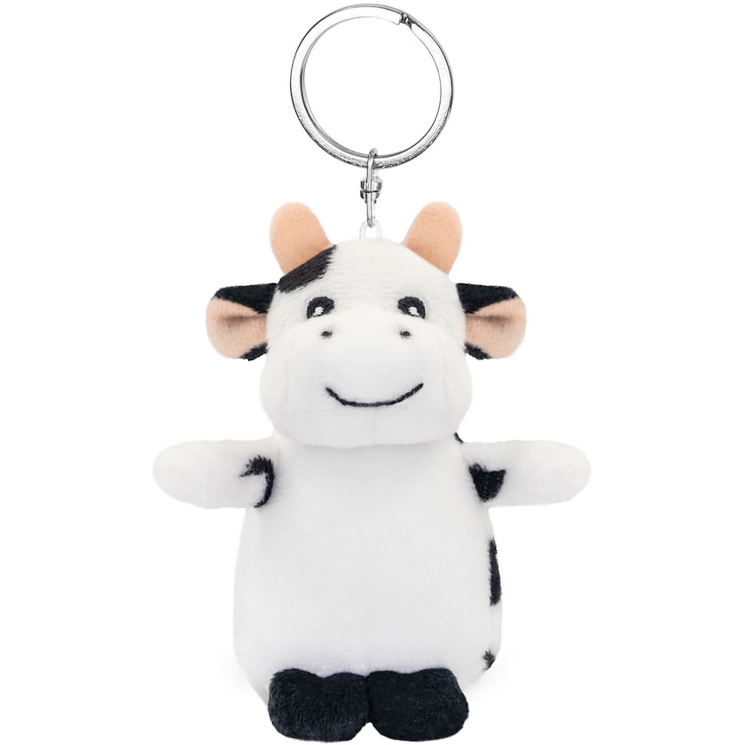 Eine fröhliche und kuschelige Kuh mit einem Schlüsselanhänger. Der Druck wird auf den Magen ausgeübt.