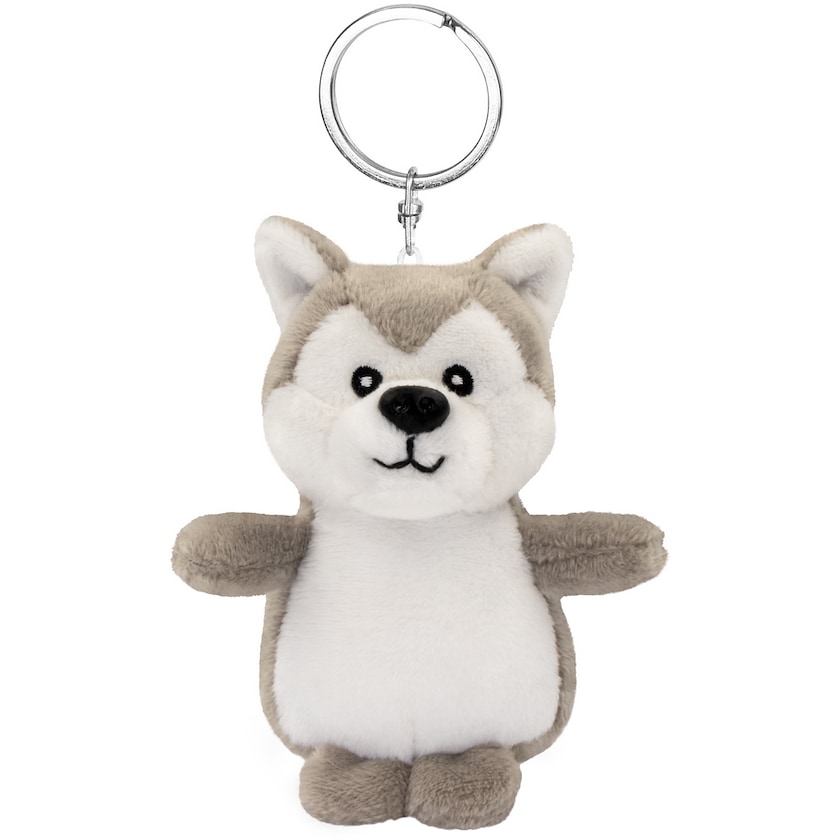 Ein schelmischer, aber sehr knuddeliger Wolf mit einem Schlüsselanhänger. Der Liebling der Kinder! Der Aufdruck ist auf dem Bauch des Wolfes.
