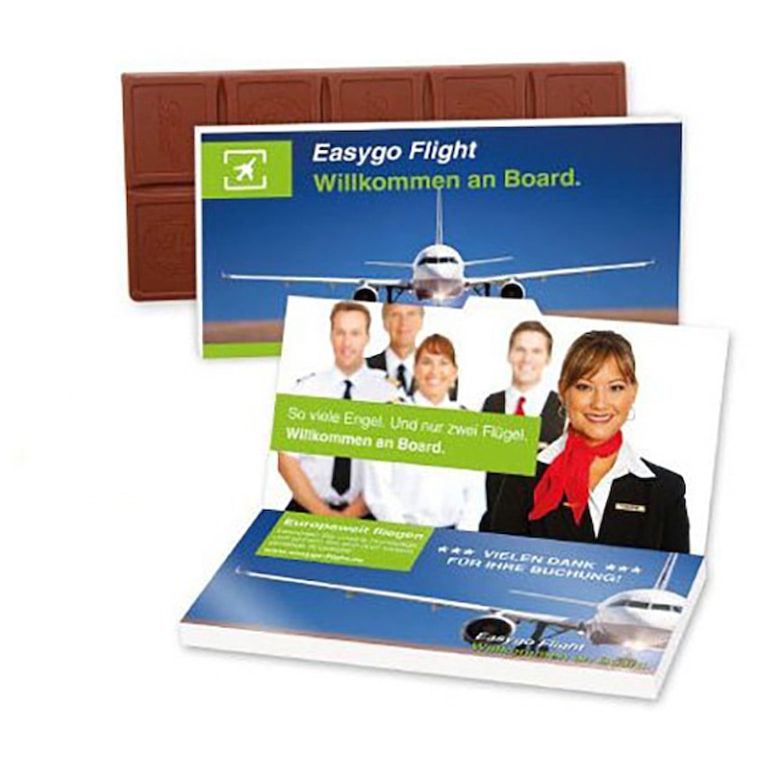 100 Gramm Schokolade Lindt Excellence mit Verpackung im 4-Farbdruck. Wählen Sie zwischen 4 Geschmäckern. Die Verpackung hat eine aufklappbare Karte für bestmögliche Werbewirkung.