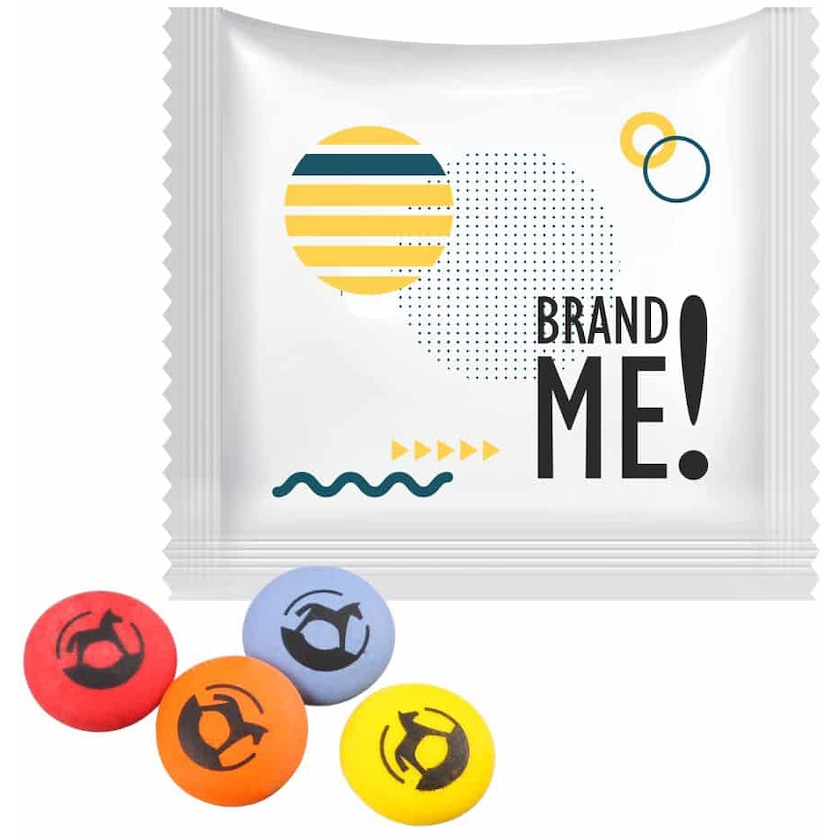 Schokoladenlinsen mit Druck auf der Tüte als auch auf den Linsen selbst. Die Tüte besteht aus biologisch abbaubarem Material und enthält 5 leckere Schokoladenlinsen. Die Tüte wird mit 4-farbigem Fotodruck bedruckt. Schwarzer oder weißer Druck auf der Vorder- und Rückseite der Schokoladenlinsen ist im Druckpreis enthalten. Werbesüßigkeiten vom Allerfeinsten!