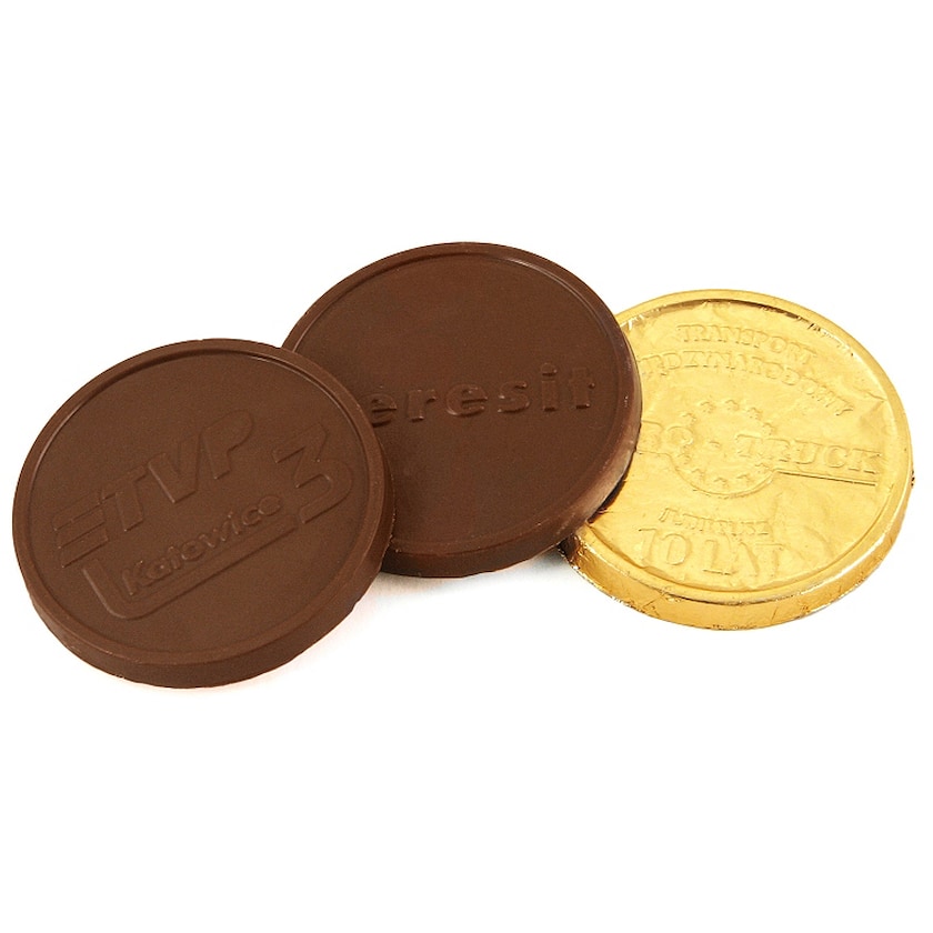Ihr Logo wird direkt auf die Schokolade geprägt. Die Schokomünzen sind aus feinster belgischer Schokolade. Sie können zwischen Silber- oder Goldfolie wählen.