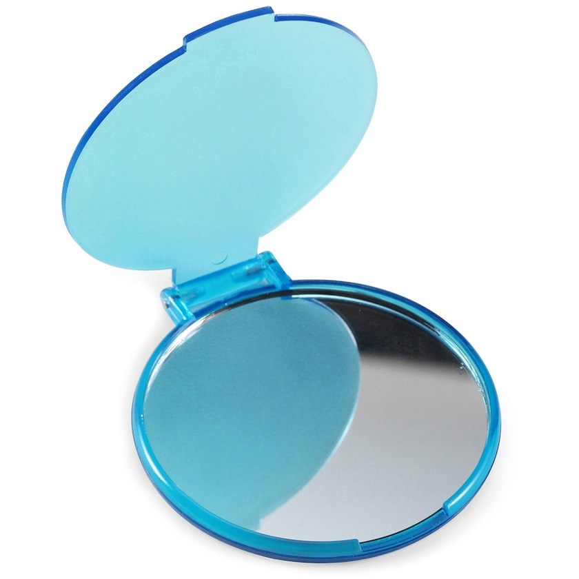 Preiswerter Schminkspiegel aus Frost Plastik. Markierung geschieht mit Druck.