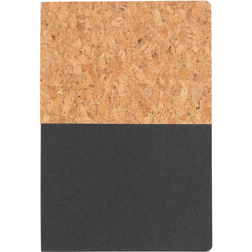 Schöner Notizblock mit Umschlag aus echtem Kork. Die Einlage von 80 Blatt besteht aus Recyclingpapier. Die Blätter sind liniert.