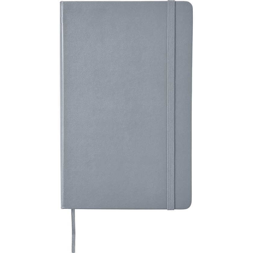Klassisches Notizbuch mit liniierten Seiten von Moleskine. Notizbuch mit elfenbeinfarbene Seiten. Hinten befindet sich ein Fach z. B. für lose Zettel. Druck nur in einer Farbe.