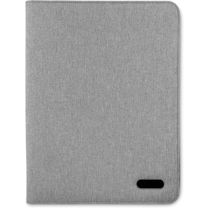 Elegante Konferenzmappe mit hochwertiger Stoffhülle. Im Inneren gibt es ein praktisches Fach für Visitenkarten, Dokumente und einen Stift. Ein Notizbuch mit 20 linierten Blättern geht im Kauf mit ein.
