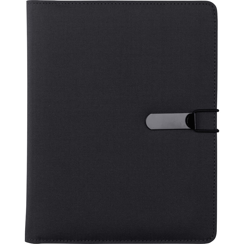 Konferenzmappe im A5-Format aus umweltfreundlichem rPET. Im Inneren befindet sich ein Schreibblock mit 64 linierten Blättern aus FSC-zertifiziertem Papier. Die Markierung erfolgt entweder mit 1-Farbdruck oder Lasergravur.