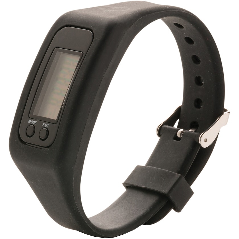 Moderne Schrittzähler der wie eine Armbanduhr getragen wird. Grace berechnet Schrittzahl, Kalorienverbrauch und Distanz. Aus angenehmen Silikon. Lieferung mit einer Batterie, die bis zu einem Jahr hält. In vielen attraktiven Farben.