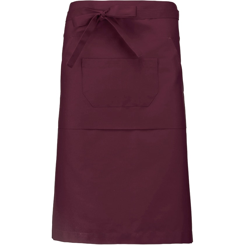 Schürze aus einer zuverlässigen Polyetsermischung. Die Schürze hat vorne eine Tasche und kleinere an den Seiten. Die Schürze ist 62,5 cm lang und 90 cm breit.
