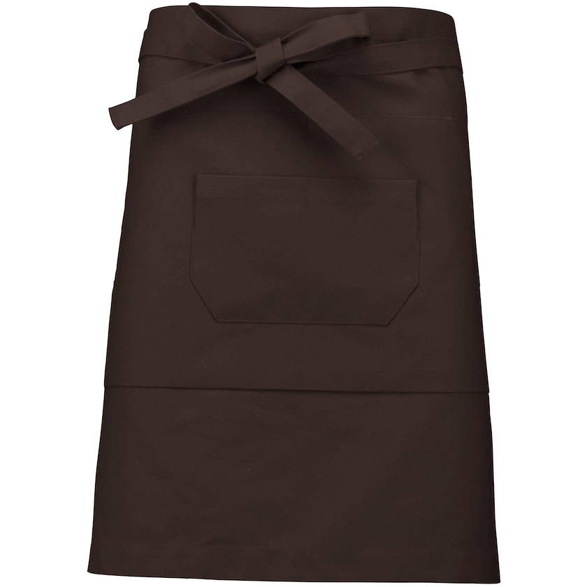 Schürze mit Logo aus 100 % Baumwolle Die Schürze hat vorne eine große Tasche und kleinere an den Seiten. Die Schürze ist 50 cm lang und 90 cm breit.