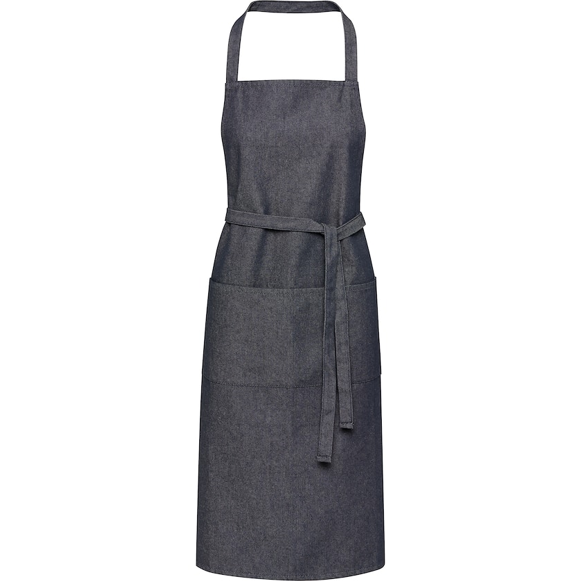 Umweltfreundliche Schürze, die bedruckt oder bestickt werden kann. Die Schürze besteht aus einem strapazierfähigen Stoff, dieser aus 70 % recycelter Baumwolle und 30 % recyceltem Polyester besteht.