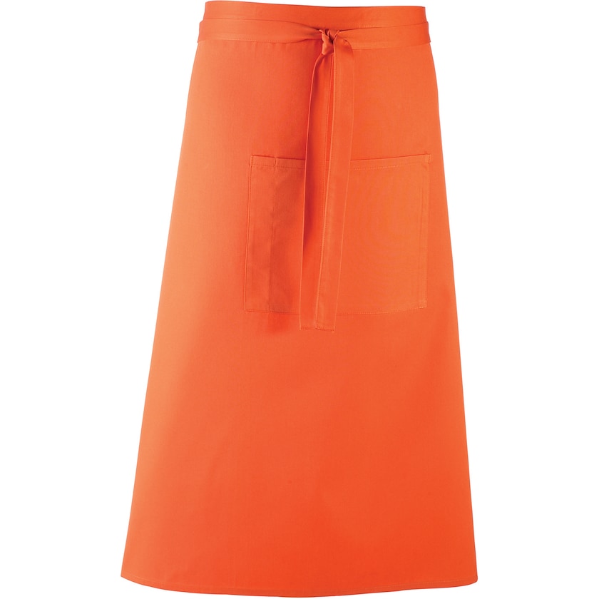 Lange Schürze von Premier, in vielen Farben erhältlich. Premier PR158 hat eine große Tasche vorne, mit kombinierter Stifttasche. Kann bis 60 Grad gewaschen werden. Wird in Plastikhülle verpackt geliefert.