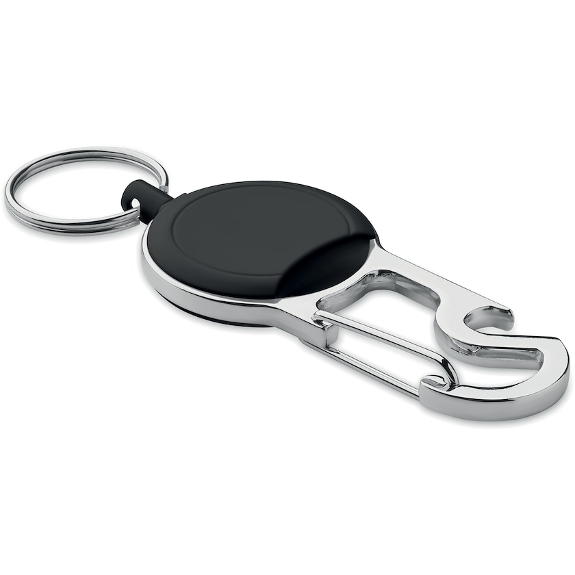 Ausziehbarer Skipasshalter mit Clip und Flaschenöffner. Hergestellt aus Metall und robustem ABS.