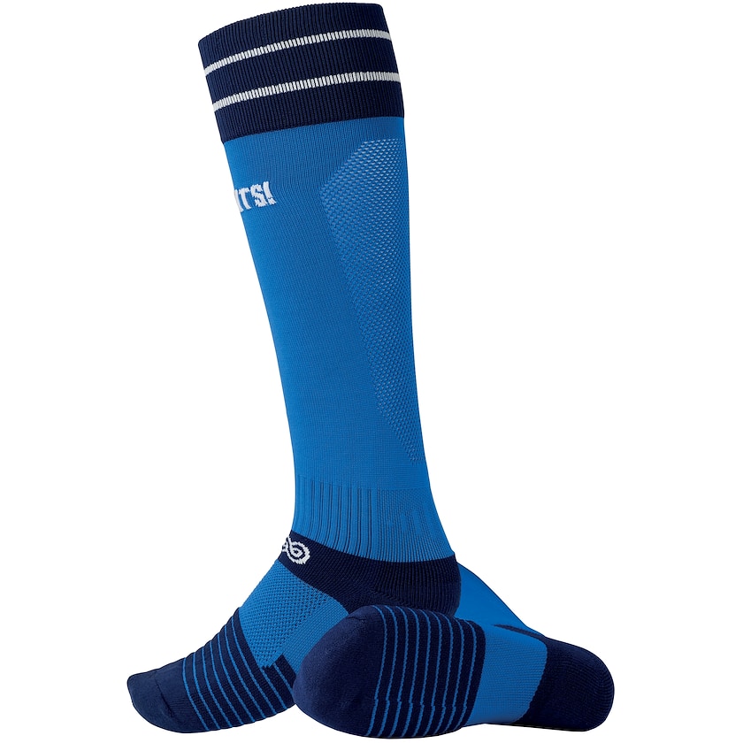 Gestrickte Fußballsocken in individuellem Design. Die Socke bietet herausragenden Tragekomfort durch eine 360-Grad-Fußbettunterstützung und zusätzliche Verstärkung an der Wade sowie der Oberseite der Sohle. Sie können zwischen einfach gefütterten Socken und solchen mit halbfrotteierter Sohle wählen, die eine verbesserte Stoßdämpfung bieten. Die einfach gefütterten Socken bestehen aus 95% Polyester und 5% Elasthan, während die Socke mit halbfrotteierter Sohle aus 75% Polyester, 17% Baumwolle und 8% Elasthan gefertigt ist. Der Stoff wird individuell nach Ihren Vorgaben gewebt und kann maximal fünf Farben enthalten. Wählen Sie aus den Größen 36-39, 40-43 und 44-46. Die Aufteilung legen Sie selbst fest, wobei mindestens 50 Paar pro Größe bestellt werden müssen. Ein Kartonetikett in Ihrem eigenen Design (eine Ausführung) ist im Preis inbegriffen.
