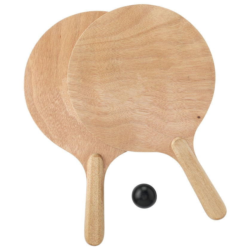 Hochwertiges Strandtennisset mit Logo. Die Schläger sind aus mit Pappelholz furnierten MDF-Holzfasern gefertigt. Der Ball ist aus Gummi. Lieferung in einem Baumwoll-Aufbewahrungsbeutel. Nur 1-Farbdruck. Der Druckpreis bezieht sich auf die Bedruckung beider Schläger.