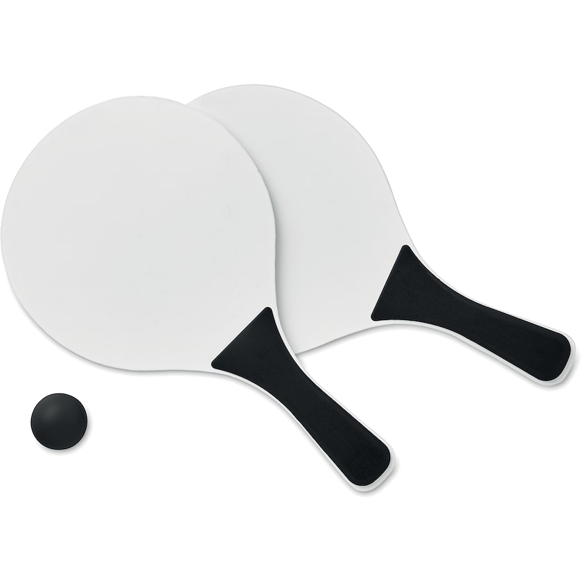 Kleines Strandtennisset mit 2 Schlägern und einem weichen Ball. Perfekt für entspannte Tage am Strand!