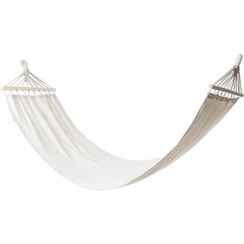 Schöne Hängematte für entspannte Sommertage. Die Hängematte besteht aus einer strapazierfähigen Mischung aus Baumwolle und Polyester. Das maximale Belastungsgewicht beträgt 120 kg.
