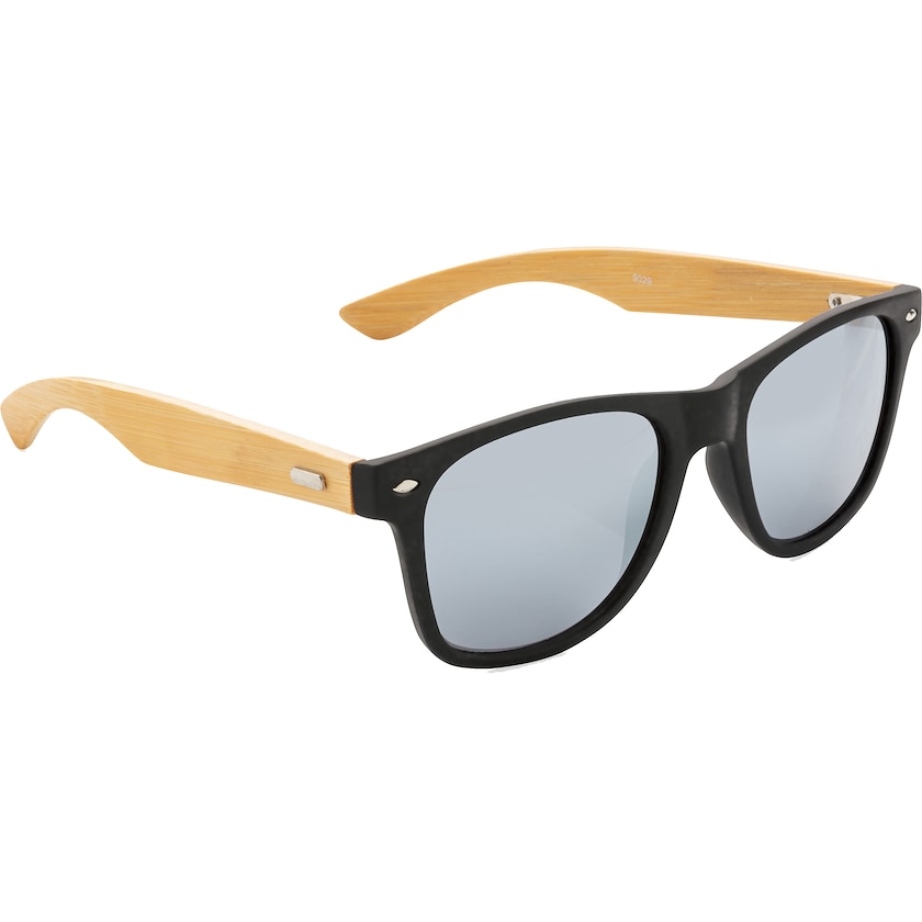 Umweltfreundliche Sonnenbrille mit Logo. Die Sonnenbrille besteht aus FSC-zertifiziertem Bambus und RCS-zertifiziertem recyceltem Kunststoff.Die Linsen beinhalten EN ISO 12312-1, UV 400 und CAT 3.