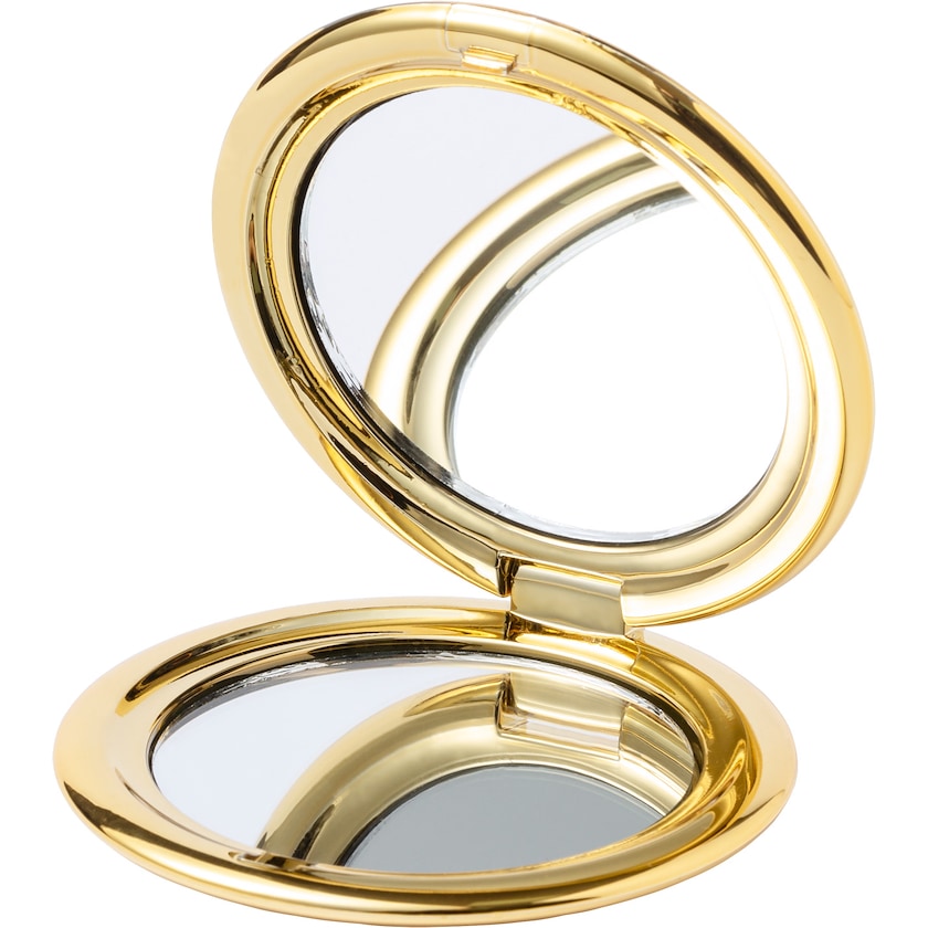 Schminkspiegel mit zwei Spiegelseiten. Der eine Spiegel ist normal, der andere ist ein Vergrößerungsspiegel.