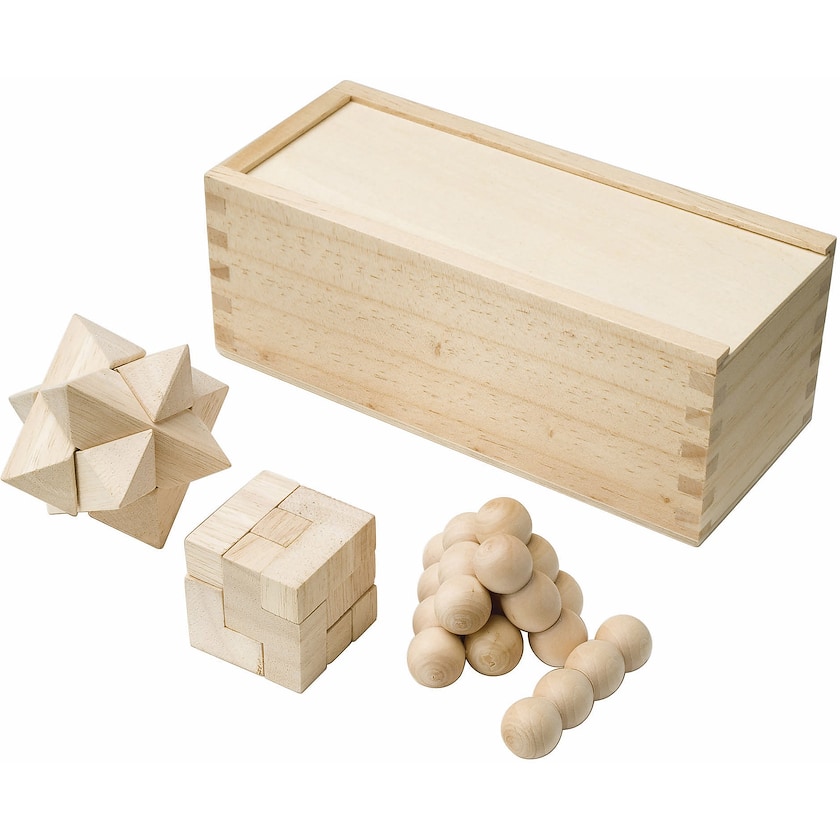 Logisch denken! Set mit 3 herausfordernden Spielen. Spiel und Schachtel sind aus Holz. Ein umweltfreundliches Geschenk!