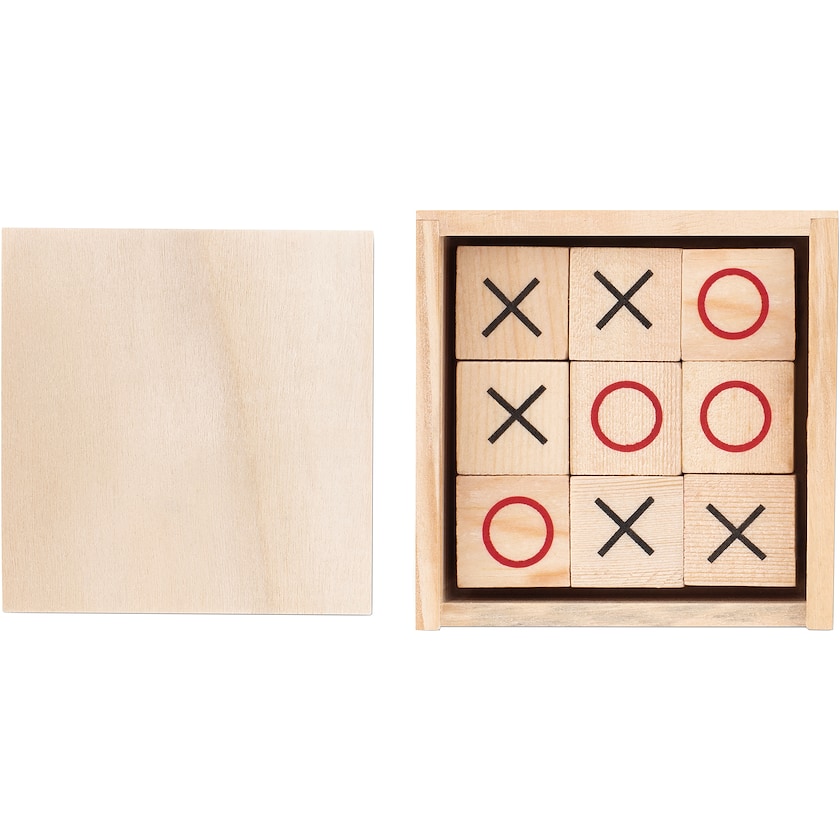 Tic Tac Toe aus Holz. Die Markierung erfolgt mit Druck oder Lasergravur. Ein zeitloses Spiel, das die Menschen seit Jahrhunderten begeistert.