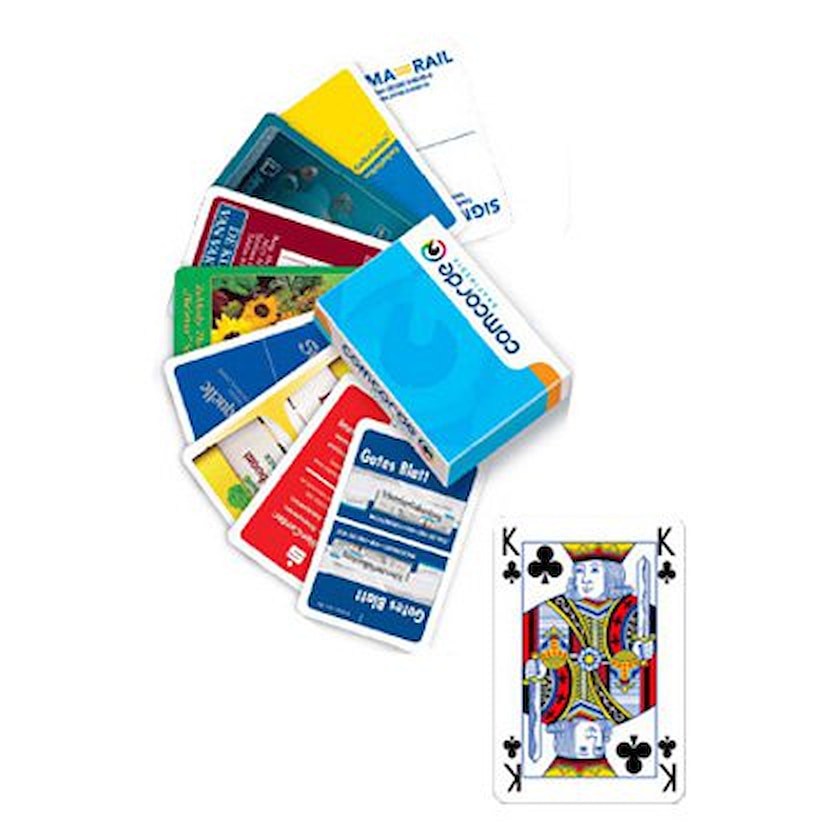 Kartenspiel Bridge mit internationalen Figuren. Mit Schachtel. Motiv wird auf die Rückseite gedruckt. Wird in Papierschachtel geliefert.