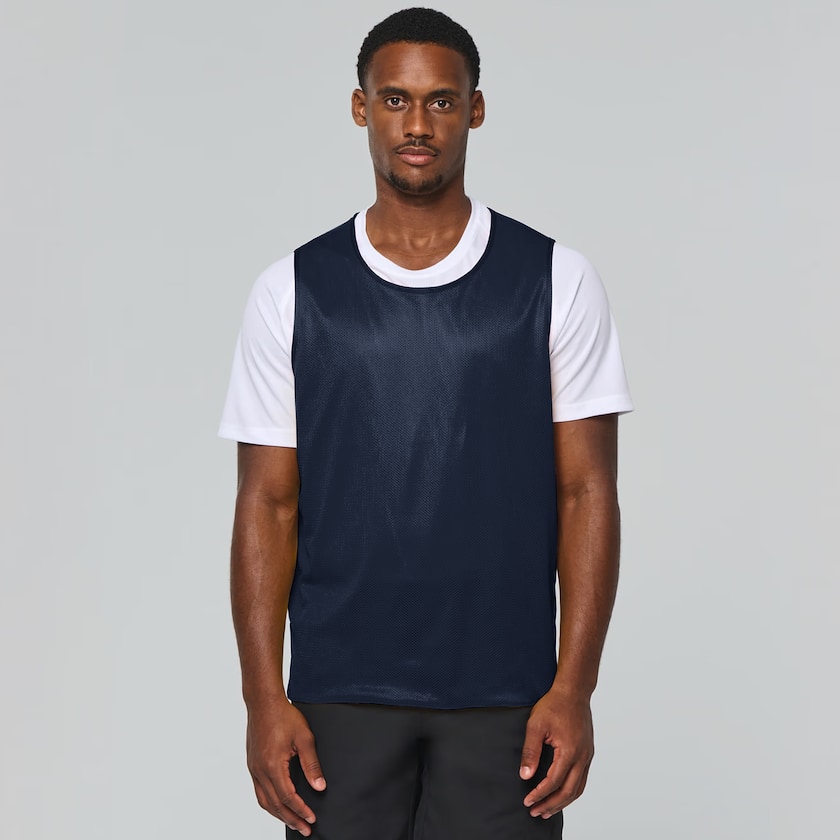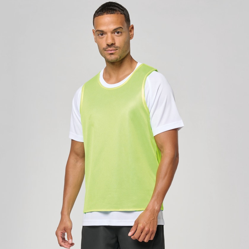 Wendbares Sportleibchen für Erwachsene. Das Leibchen ist aus 100 % Polyester. In zwei verschiedenen Größen. Eine gute Wahl für alle, die ein hochwertiges Sportleibchen suchen.