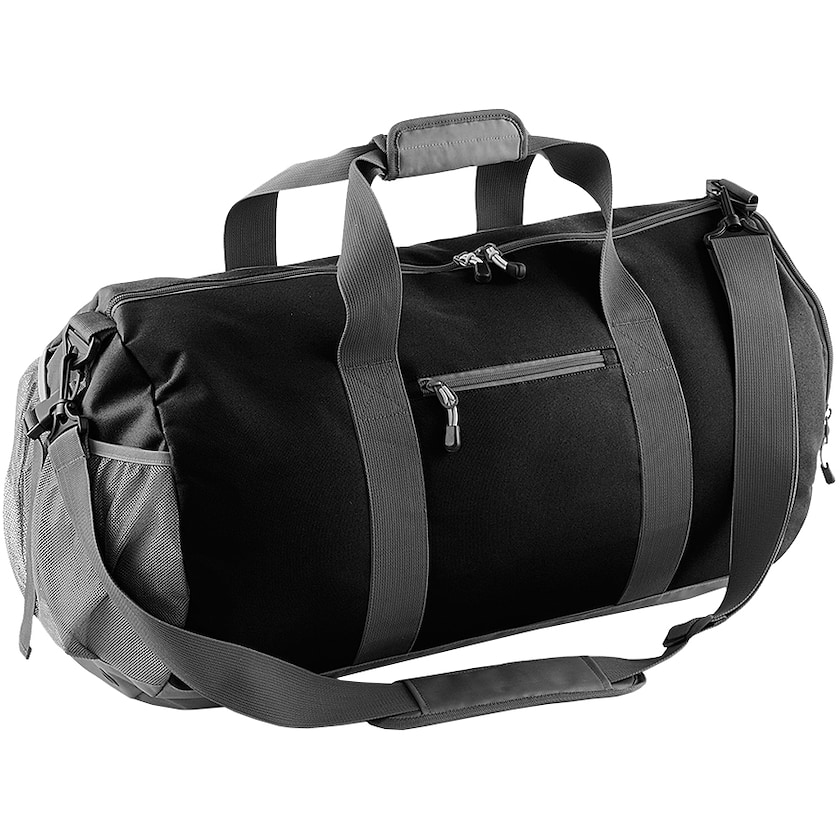 Sporttasche aus wasserabweisendem Stoff. Die Tasche hat ein separates Schuhfach und ein Reißverschlussfach für Wertsachen. Der Tragegurt ist verstellbar und kann abgenommen werden.