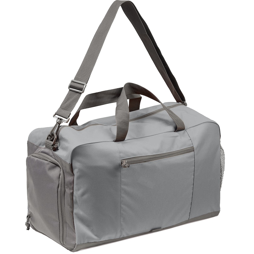 Geräumige Trainingstasche in vielen Farben erhältlich. Die Tasche hat ein abgetrenntes Fach für beispielsweise schmutzige oder feuchte Kleidungsstücke. Auf der Vorderseite befindet sich eine kleinere Tasche mit Reißverschluss. Die Reflektoren erhöhen zudem die Sichtbarkeit im Dunkeln.