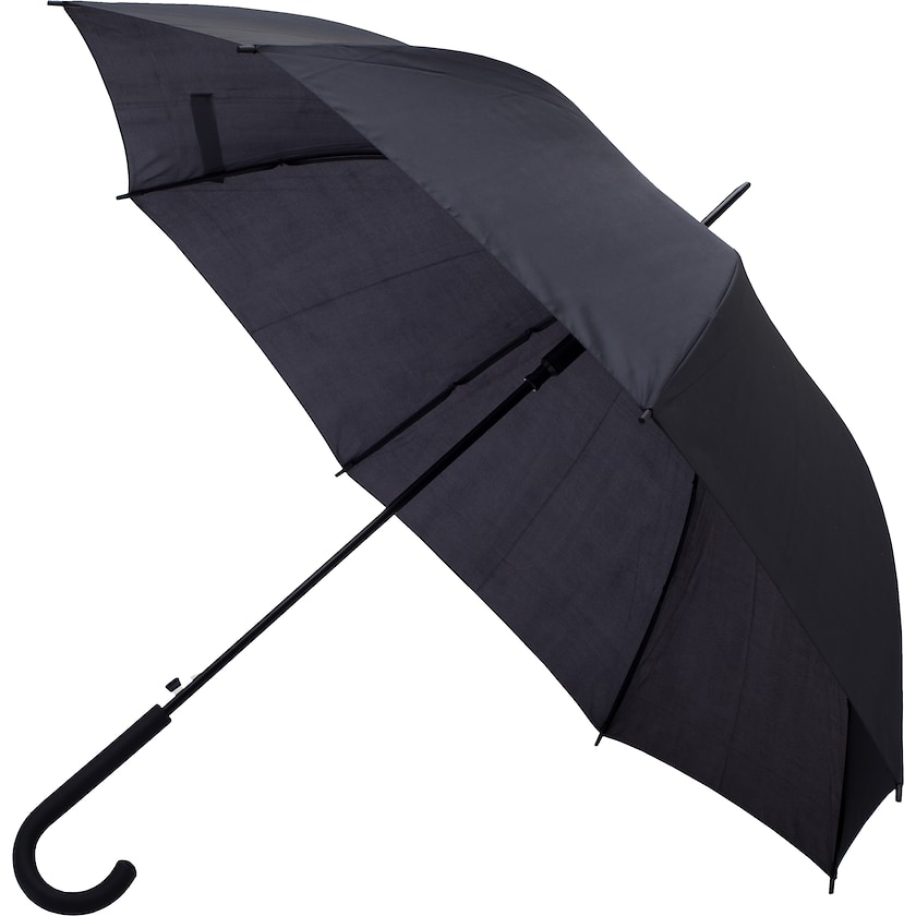 Automatischer Regenschirm aus Metall mit gebogenem Griff aus EVA. Konstruktion aus Metall und einem gebogenem Griff aus EVA.