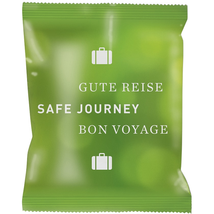 Tüte mit Fruchtgummi, mit 4 verschiedenen Grüßen erhältlich. Wird direkt ab Lager geliefert, in Einheiten zu 250 Stück. Das Fruchtgummi kommt in verschiedenen Formen, abhängig von der gewählten Tüte. Rote und gelbe Tüte: rote Herzen, blau: Sterne in gemischten Farben und grün: Autos in gemischten Farben.