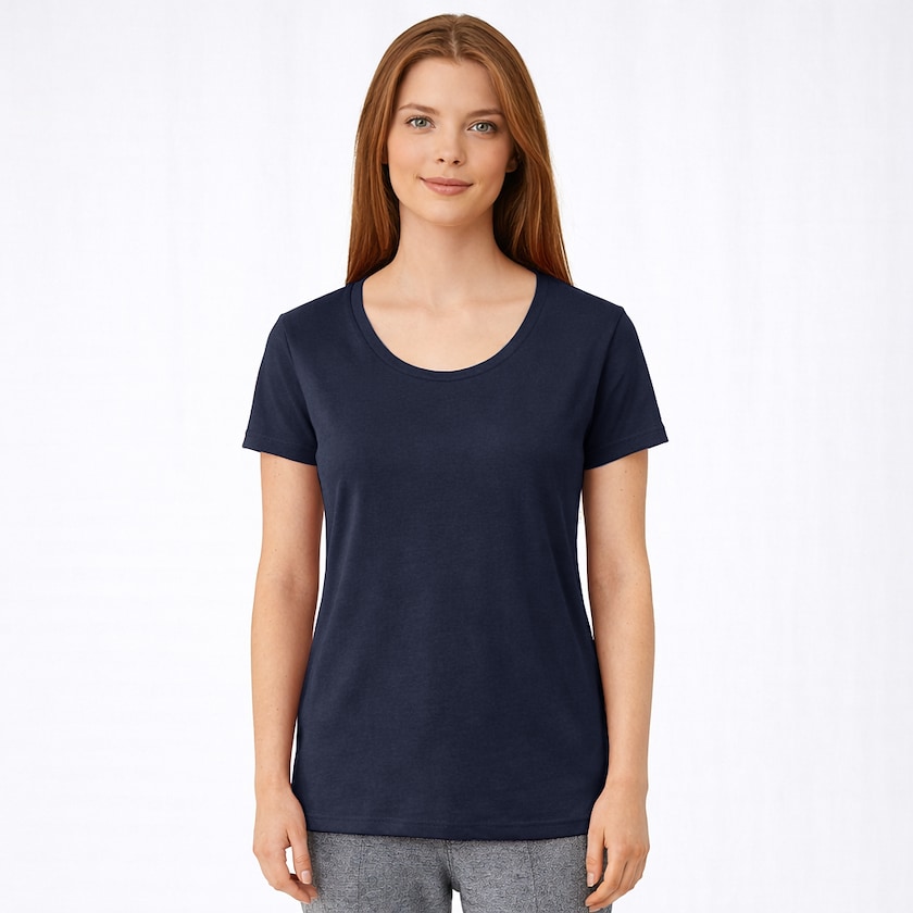 Schönes Damen-T-Shirt mit Viskoseanteil. Der Stoff ist aus 50% Polyester, 25% Baumwolle und 25% Viskose. Die Mischung sorgt für ein sehr weiches und bequemes T-Shirt, das angenehm zu tragen ist. Wird einzeln verpackt in Plastiktüte geliefert. Gibt es auch als Herrenmodell.