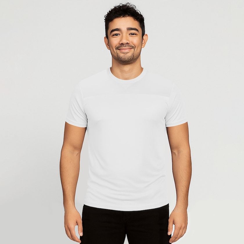 Umweltfreundliches Trainings-T-Shirt für Herren. Der Stoff besteht zu 90 % aus recyceltem Polyester und zu 10 % aus Elasthan. Der Stoff wurde speziell für das Training entwickelt und fühlt sich auch bei intensiven Workouts kühl an. Gibt es auch als Damenmodell.