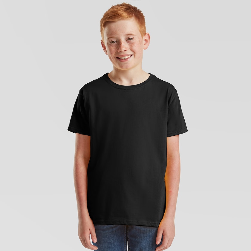 Modernes Kinder-T-Shirt in vielen verschiedenen Farben Das T-Shirt ist aus 100 % Baumwolle, mit Ausnahme der Farbe heidegrau, die aus 97 % Baumwolle und 3 % Polyester ist, und allen Farben mit "heather" im Namen, die aus 52 % Baumwolle und 48 % Polyester sind. Geliefert wird einzeln verpackt in Plastiktüten.