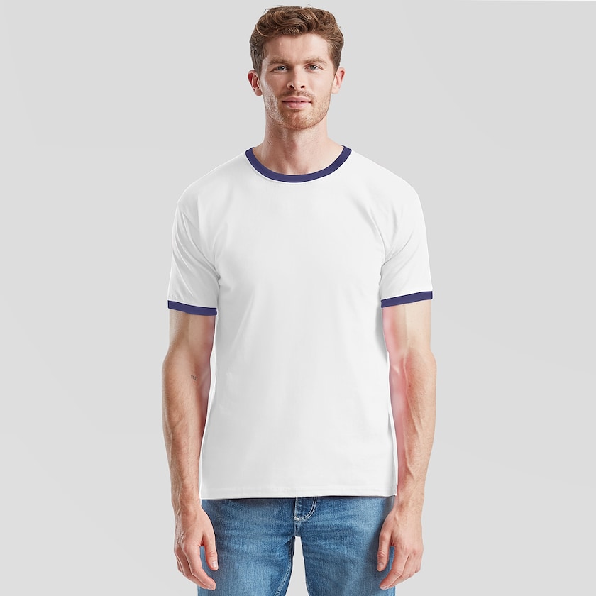 Schöns, günstiges T-Shirt mit weißer Kontrastfarbe an Hals und Ärmeln. Die T-Shirts werden einzeln verpackt geliefert.