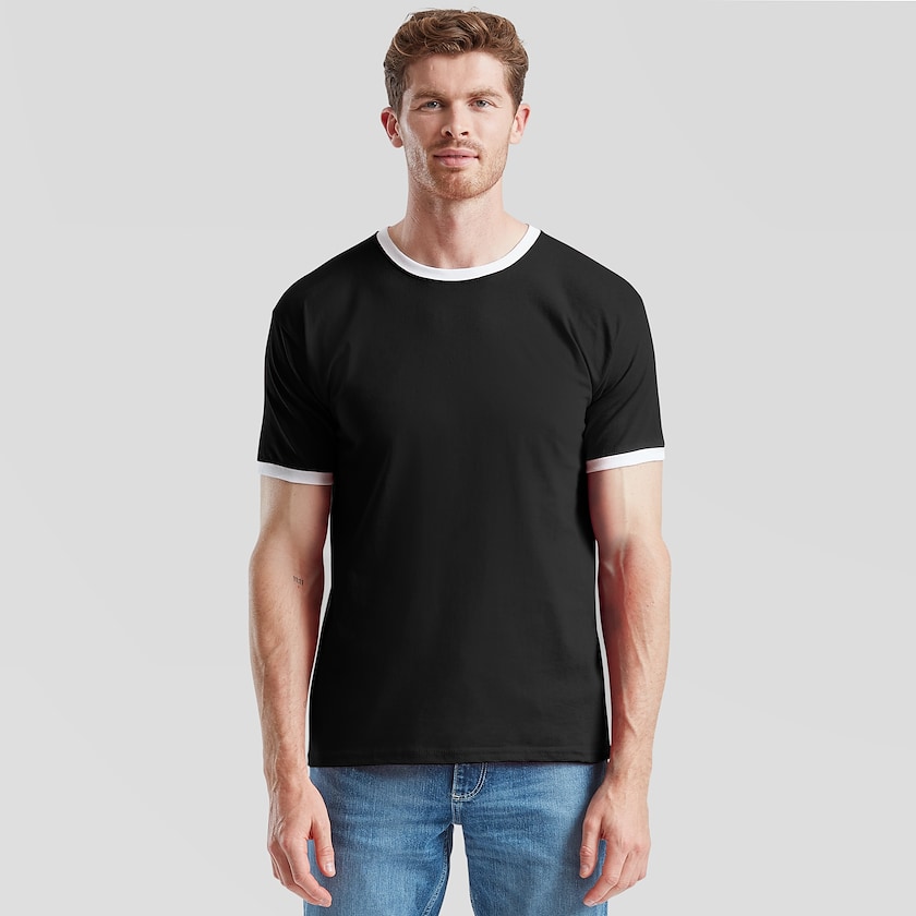 Schöns, günstiges T-Shirt mit weißer Kontrastfarbe an Hals und Ärmeln. Die T-Shirts werden einzeln verpackt geliefert.