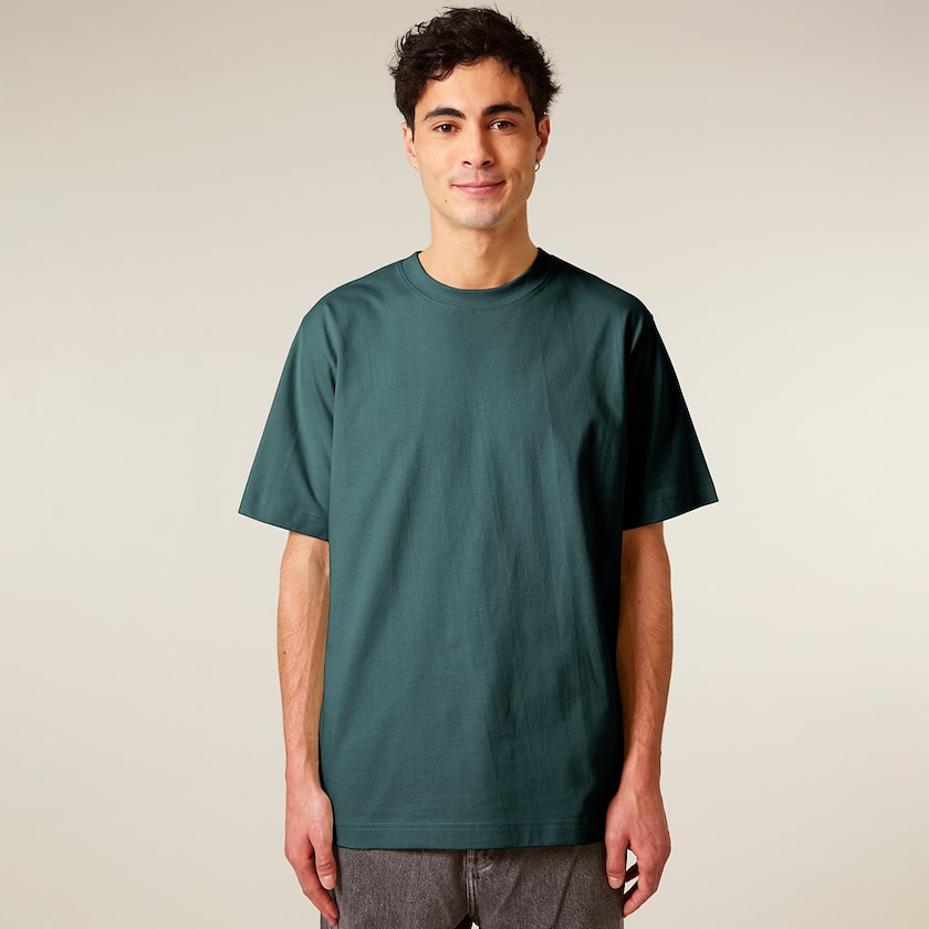 Unisex-T-Shirt aus schwerem Stoff mit etwas gröberer Textur. Der Stoff besteht aus Bio-Baumwolle und ist daher eine gute Wahl für die Umwelt.