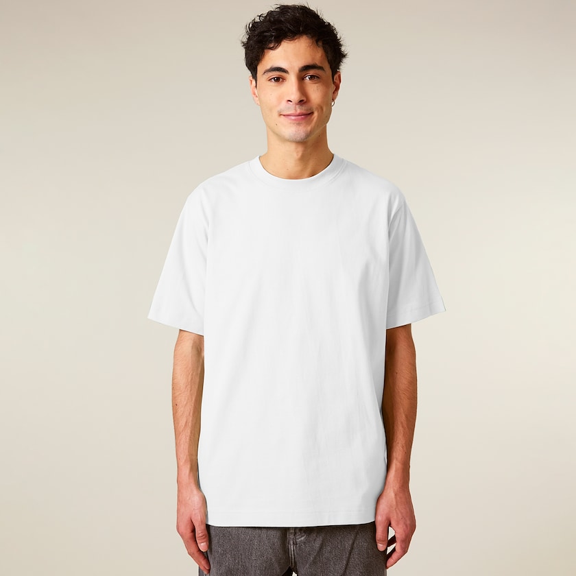 Unisex-T-Shirt aus schwerem Stoff mit etwas gröberer Textur. Der Stoff besteht aus Bio-Baumwolle und ist daher eine gute Wahl für die Umwelt.