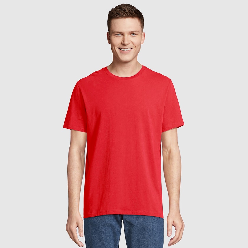 175-Gramm-T-Shirt aus 100 % Bio-Baumwolle. Erhältlich in vielen Farben. Die Farbe grau melange hat eine Zusammensetzung aus 85% Bio-Baumwolle und 15% Viskose.