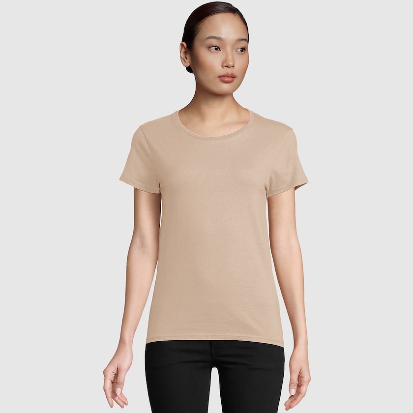 Damen T-Shirt aus Bio-Baumwolle. Erhältlich mit Druck ab 10 Stk. Das T-Shirt besteht aus einem 175 g/m² schweren Stoff aus 100% Bio-Baumwolle. Der Stoff fühlt sich angenehm weich an. Gibt es auch als Herrenmodell.