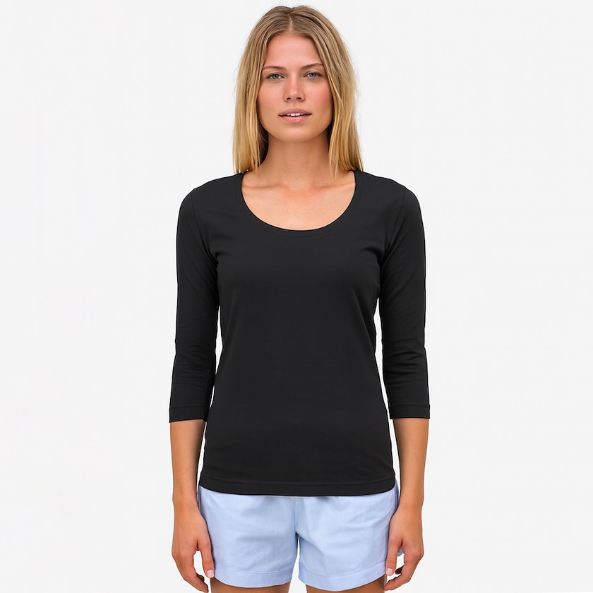 T-Shirt von Tee Jays mit 3/4-Ärmeln und schönem Stretch. Aus 90% Baumwolle und 10% Full Feeder Elastane gefertigt, was dem Hemd eine gute Stabilität gibt. Wird in Plastikhülle verpackt geliefert.